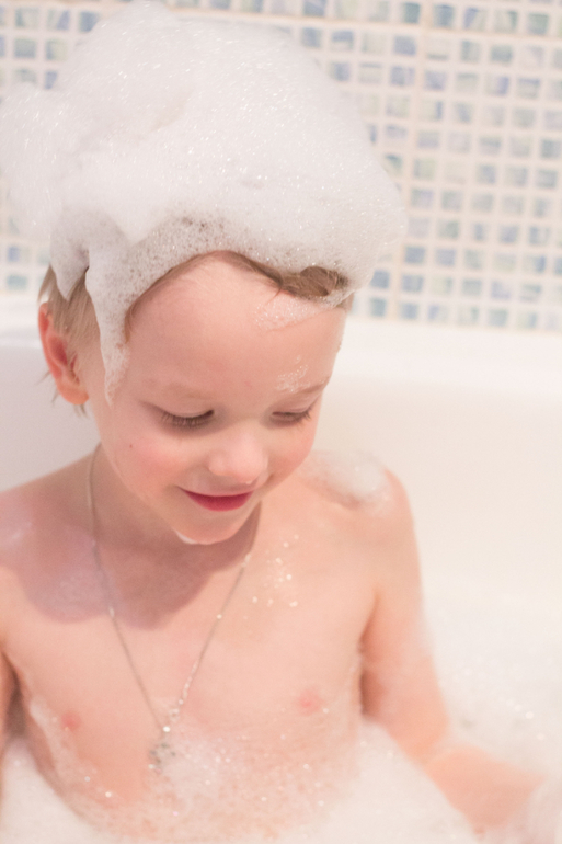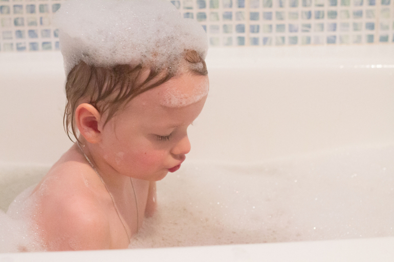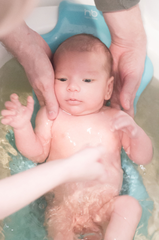 Купаем Саню мы тоже вместе с Ваней. Ване очень нравится поливать пузо Сани водичкой.