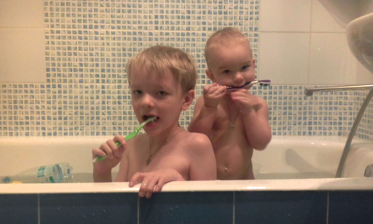 Очень любит купаться с Ваней в ванной. Может переливать воду из одной емкости в другую до бесконечности.