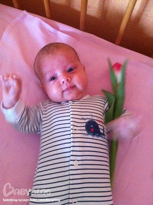 Дальше со снами день на день не приходится-то спим, то бодрствуем. Когда бодрствуем-абажааааем глазеть по сторонам, оо, это просто наше все. Порой у меня ощущение, что она голову повернет на 360 градусов) выворачивает во все стороны-бдит)) Гулить не гулим, редко выдаем что-то похожее на "да", точнее "аа"..Когда плачем-отчетливо слышно "маааа") как бэ "маама,ну ты и коза")) Зато очень забавно скрипим-кряхтим, за что ласково именованы Скрипочкой)