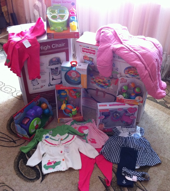 Вообще,конечно,я дурею от того,сколько всяких прибамбасов есть для современных детей! К нам вчера еще заморская посылка приехала от моего отца(фото ниже),так теперь я вообще не знаю,куда деваться от Аниных вещей..) у нас уже 3 мобиля:собственно сам мобиль,ночник с проекцией на потолок и красивыми картинками там, и вчера получили такой:за ниточку тянет мелкая,и в ответ колыбельная начинается, а в самом мобиле игрушки бегают..короче,я в восторге! А Аня зажралась!)) и ни на что уже не реагирует..я решила,что когда в Москву поедем,возьму по минимуму погремушек,пусть отдохнет.