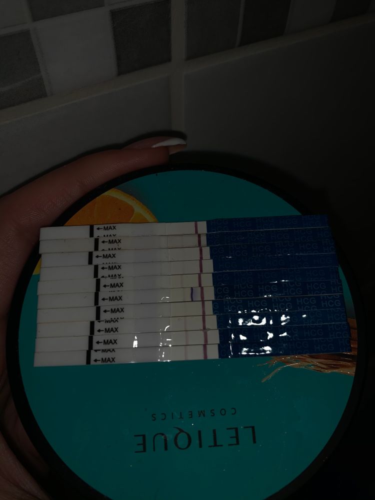 Тесты показывают,сегодня с утра сделала тоже показал(тест самый нижний).Поехала на узи-сказали срок где то 2 недели и 2 дня либо внематочная либо вторая фаза менструаций.Стенки утолщенные но пузырика не видно,сказали приходить через две недели.