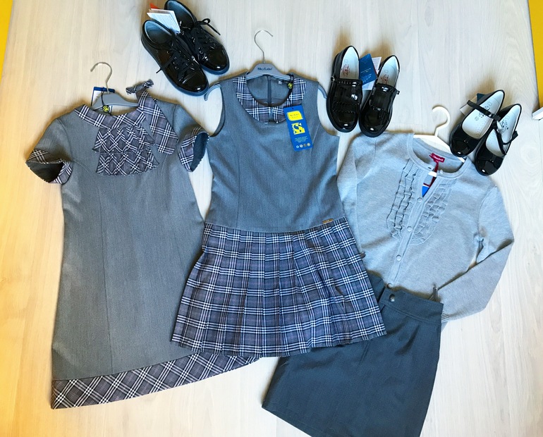 Форму выбрали серую в розовую клетку. !! Купила 2 сарафана и одну однотонную юбку.