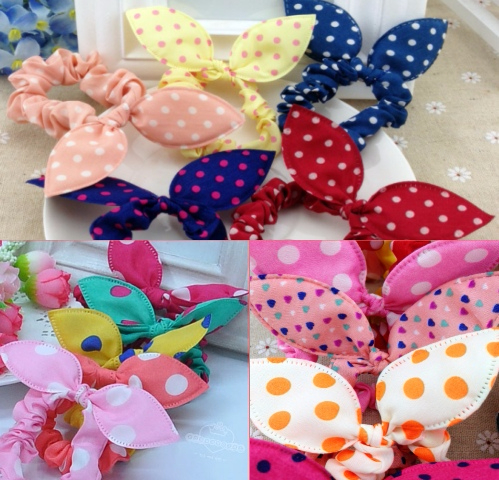 Резинки-ушки ассорти 10шт, цветочки, горох, круги, цвета уточняйте