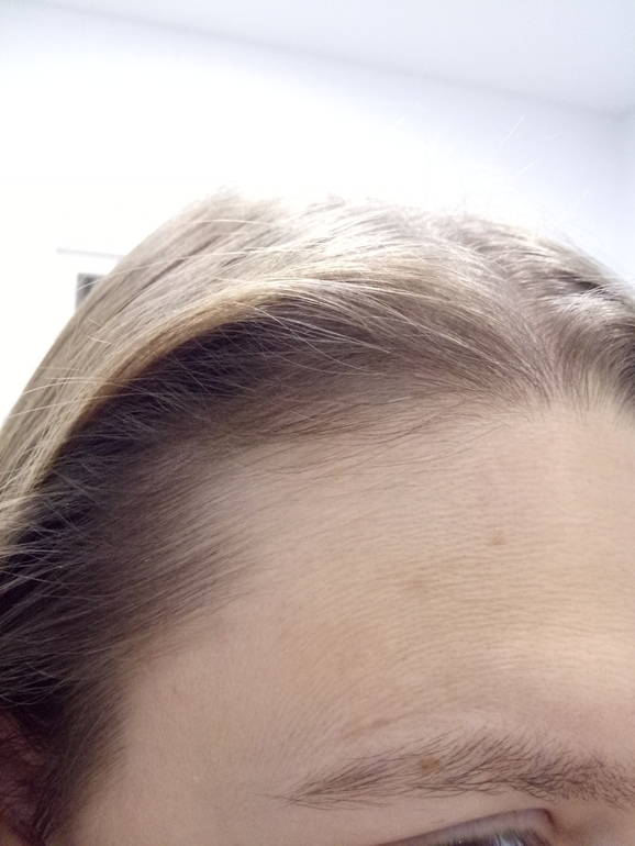 Никаких неприятных ощущений после нанесения, небольшой холодок по коже головы, что в летнюю жару даже приятно. Лед тронулся, господа присяжные заседатели. Потихоньку начали появляться мини-волоски по пробору, но залысинки на висках пока никак не изменились.
