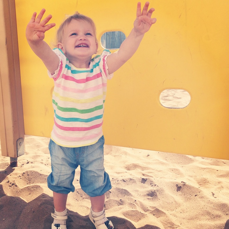 Физическая активность. Научилась бегать, страшно аж, несется по квартире, аж заносит! Вот-вот научится прыгать, уже иногда ножки от земли немного отрываются))) Наусилась садиться спиной на стульчик, в роли стульчика у нас горшок, по прямому назначению его использовать отказывается категорически.