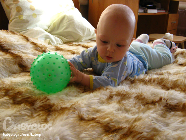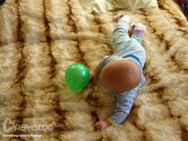 Сладенький Бубочка!!! Совсем как взрослый играет с мячиком))) а у нас щас прикол такой: кинуть игрулю подальше от себя и ползти за ней по-пластунски)))...