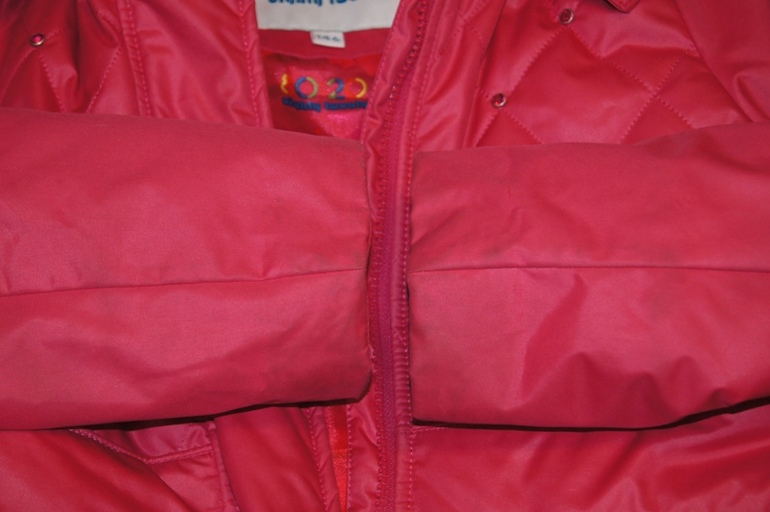 Маркировка 146. Тёплое, лёгкое, очень красивое. Носили один сезон, быстро переросли. Из недостатков: немного потёрты рукава с внутренней стороны, чуть потёрт низ спины школьным рюкзаком, царапнуты стразики на кнопках ( не видно), на рукавах несколько маленьких штрихов шариковой ручкой. Покупала прошлой весной за 6 тысяч на сезонной распродаже, отдам за 1500.