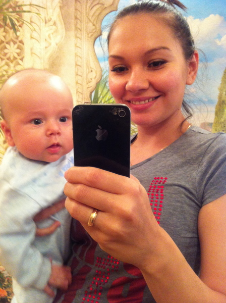 Сейчас полулежа на моем животике балдеет, держит меня за пальцы и поднимает их.Еще очень любит смотреть в окошко, у нас почти во дворе строят огромный каток, так Маркуша так любит смотреть за процессом строительства, глазенки большущие и слюни рекой от удивления:)