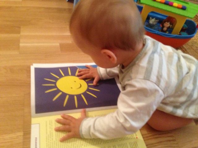 не ходит пока, но походка стала увереннее,хорошо ползает, всё открывает и расюрасывает на своем пути. Берет шапку и пытается одеть ее на голову, дает некоторве игрухи чтобы я их включила( завела), очень любит книжки серии школа семи гномов, улыбается картинкам, даёт мне, листает, показывает глазки. Очень любит мячи, футболит их ногами. Всё время говорит папа, телефон звонит видит картинку и говорит папа, очень радуется при встрече с папой.Стал менятмя голос, такой бас иногда :))) Смешной:)
