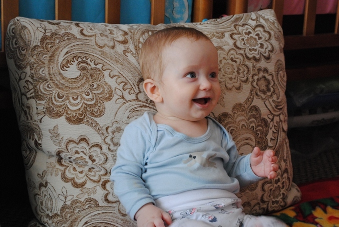 Кушаем в основном каши, ввела творожок и желток, овощами кормлю только в качестве добавки к пище. Спустя две недели прописанной нам диете на кашах детки стали меня очень радовать! Полинка поползла, по-пластунски правда, но все-ткаи! Раньше я им стелила плед для игр на полу в комнате, а недавно мою посуду и вижу, что моя девочка уже в коридоре ползет. Пробралась через барикады и вперед!)))) Теперь ползает везде и всё сметает и рушит на своем пути. Сама не сидит, только с поддержкой и то болтается из стороны в сторону.