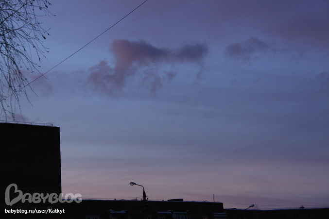 Вечером домой возвращались и сняла вот такое небо. Понравился цвет и облака. На градуснике +1