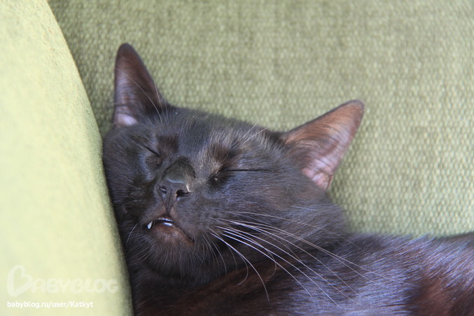 Всё-таки, животинка в доме - это очень уютно! Мирно посапывает на офисном кресле: