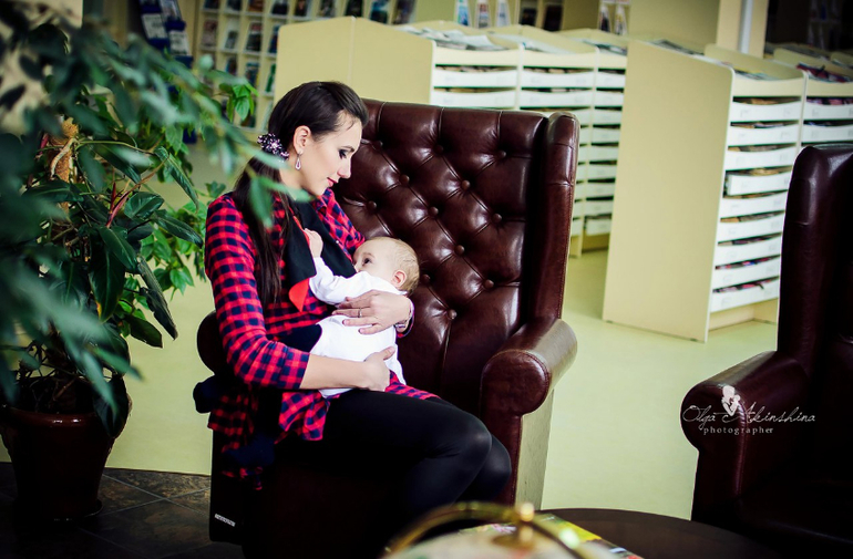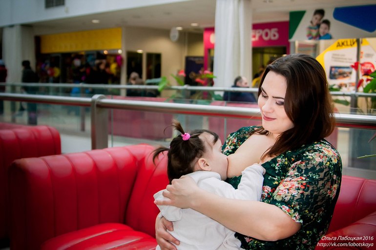 Тамара :" Своего первого ребенка я кормила всего лишь месяц, у меня не было интернета и рядом не оказалось человека, который мне сядет и расскажет, что я делаю не так. А я делала все не так, я совершила все ошибки ГВ, которые есть, несмотря на стопку журналов о детях и книг. К рождению второго ребенка я готовилась более углубленно, я знала, что буду бороться за молоко, потерплю боль и воспользуюсь всеми знаниями о ГВ, чтобы моя малышка получила от мамочки все, что ей положено природой. И все равно я не все знала, помог консультант в роддоме, там же я ходила на лекции. Выходя из роддома я думала все, я теперь крутая молочная мамочка, готовая ко всему. Но самым большим испытанием было кормить в очередях, в магазинах, в машине, как же мне было неловко, ощущение, что я совершаю, что-то постыдное, неприемлемое в обществе. Я знала, что для сохранения лактации нельзя давать бутылочки, водичку мы пили с помощью ложки, лекарство с помощью шприца, поэтому сцеживать и давать отпадали сразу. Я приобрела эргорюкзак и стала более мобильной, я не сидела дома. У меня есть сын, которому 10 лет и, что я за мать, если его жизнь станет тусклой и скучной, потому-что мама не может выбраться из дома из-за того, что общество не готово к мамочкам, которые кормят своих детей. У нас некому сидеть с детьми, да и мы привыкли везде быть вместе, я не могла лишать старшего мамы. Именно это дало мне побороть себя, свою скромность и какое-то пошлое восприятие ЕСТЕСТВЕННОГО процесса, как интимного.