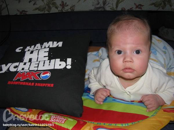 Сегодня сижу за компьютером, сына положила на спинку. Лежит он себе спокойно, обложенный игрушками и играет сам с собой на развивающимся коврике. Слышу кряхтит...поворачиваюсь...ииииии.............сказать, что я была удивлена-это не сказать ничего!!! Он уже сам перевернулся на живот, поднял голову и смотрит по сторонам. Я от радости даже взвизгнула. Я понимаю, что это мелочь и может у кого-то дети давно сами переворачиваются со спины на животик,но у нас прогресс. Хоть и маленький, но очень приятный. Позвонила мужу рассказала, потом маме набрала и решила этой радостью поделиться с вами.)))