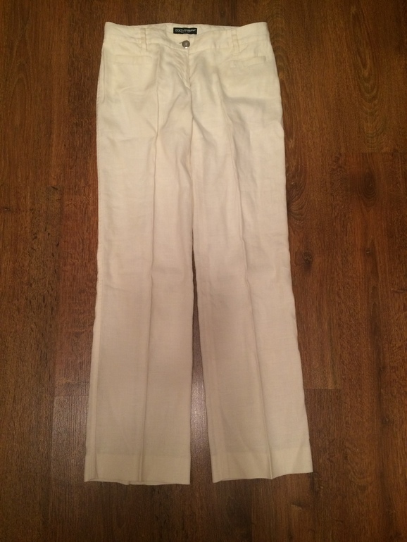 210. Летние брюки dolce & gabbana 40-42. Отличное состояние, но появились небольшие желтоватые разводы на сгибах от хранения, стирка или химчистка все исправят. Цена 1200