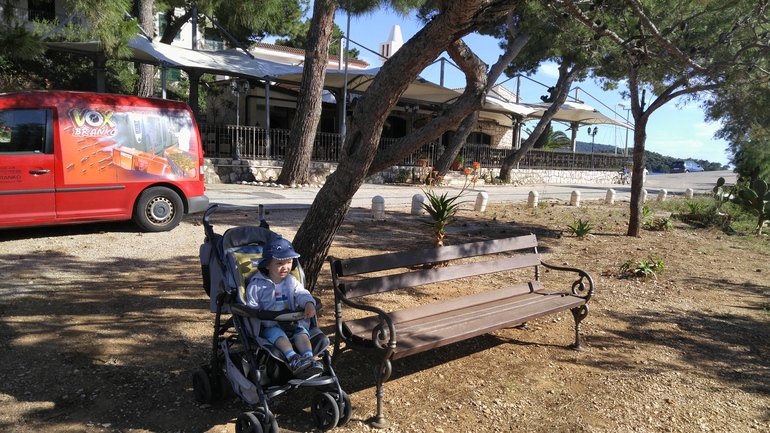 Выбрали одну скамеечку на набережной и перекидали все шишки с ели в море...в конце нашего отпуска шишки остались только на ели))))