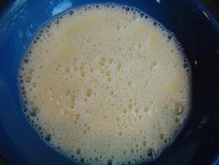 Затем взбитое яйцо (обмакиваем тот же кусочек в него):