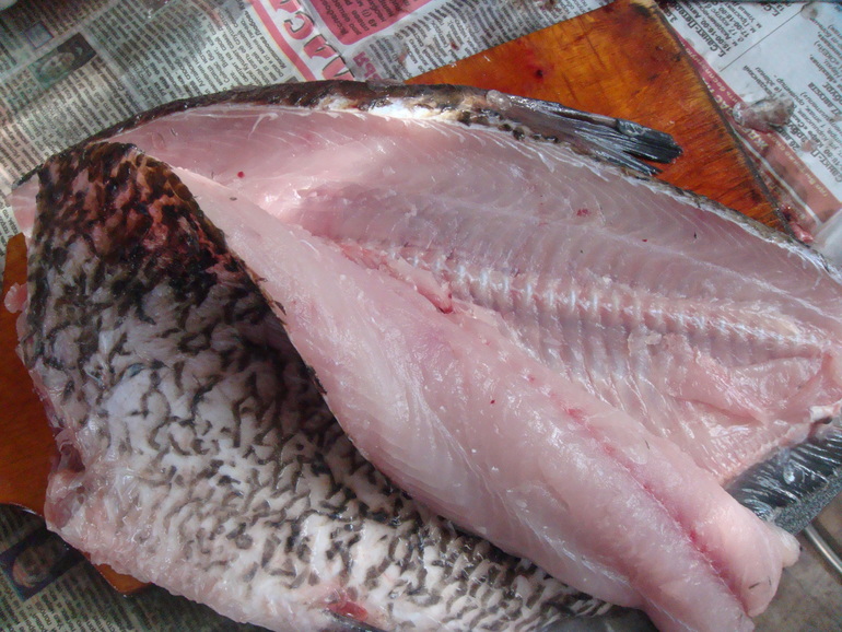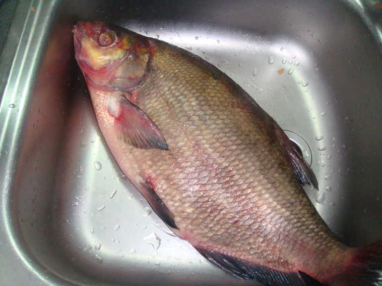 Первые несколько раз думала, что меня подначивают. Но оказалось, что поджарить рыбу тоже надо умеючи! А тут мне как раз посоветовали распробовать леща. Что ж, купила. Вот он огромный красавец: