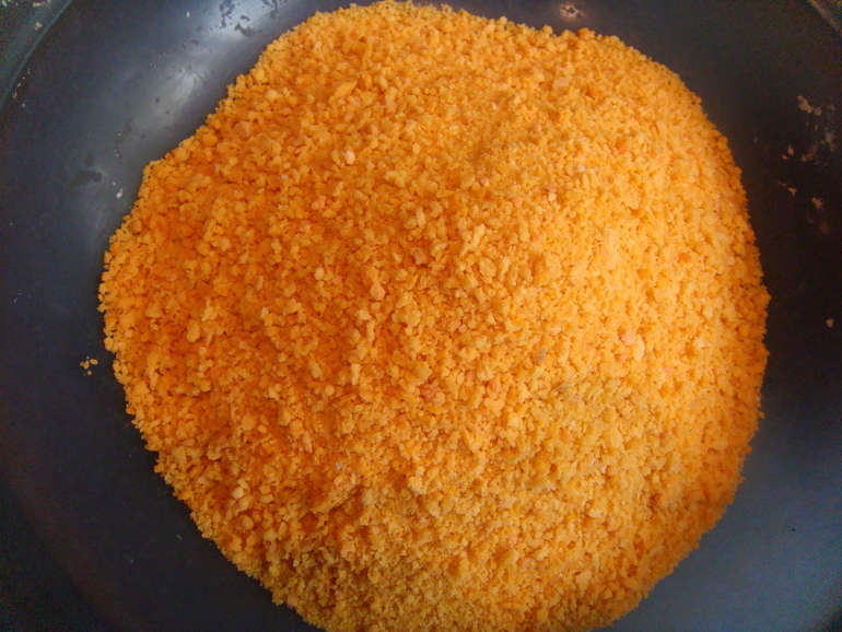 Последняя тарелка с панировочными сухарями (щедро обваливаем в них наш кусочек):