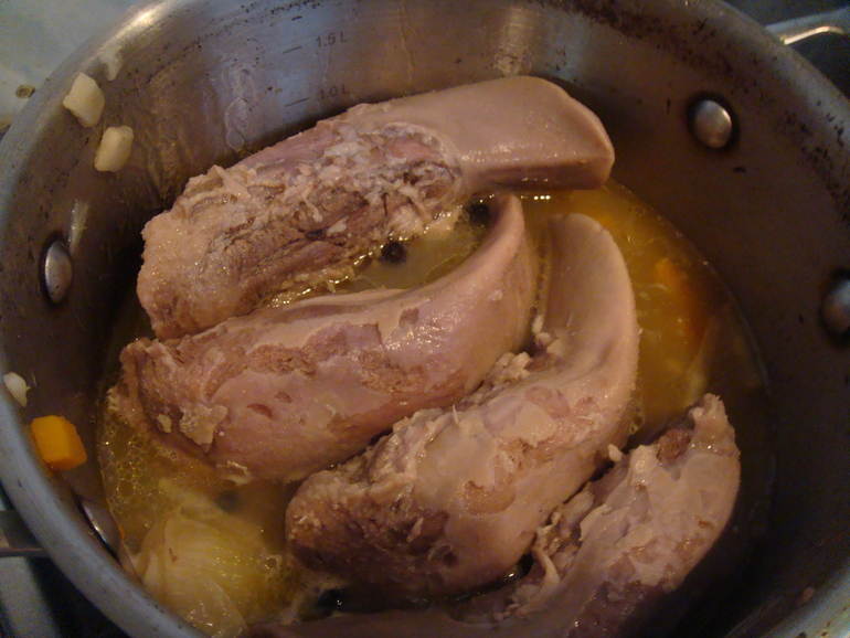 Студень варю всегда только из говядины и не признаю копыта. Покупаю путовый сустав и подбедерок: