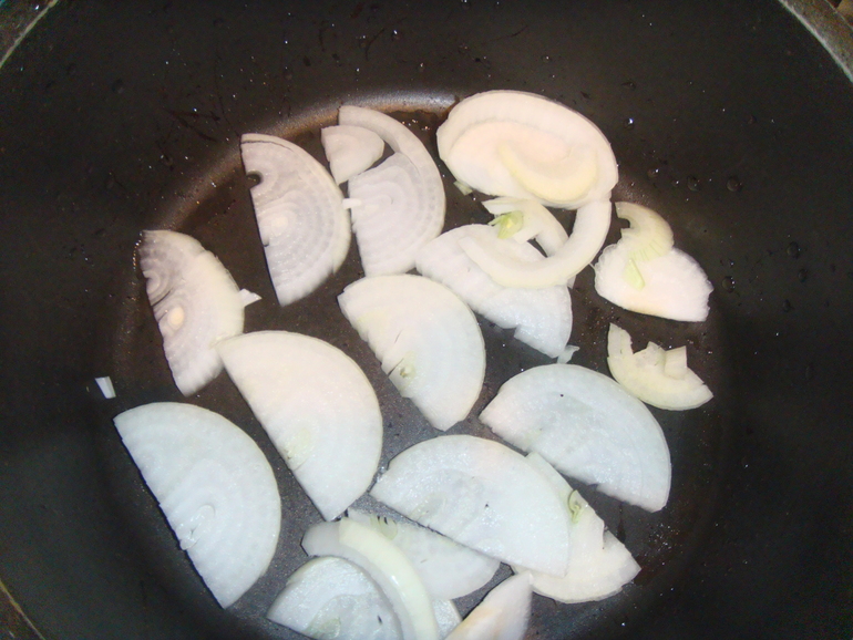 На дно казана укладываю много лука: