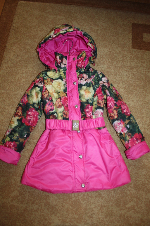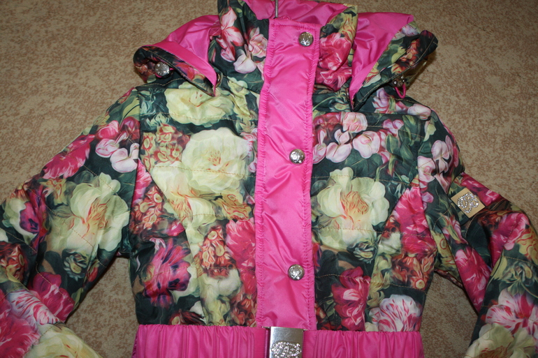 Очень красивая курточка на рост 110-116. Замеры: длина куртки от плеча - 55-56 см, длина рукава от плеча без подворота - 45 см (но можно подвернуть и будет розовый манжет). м. Пражская