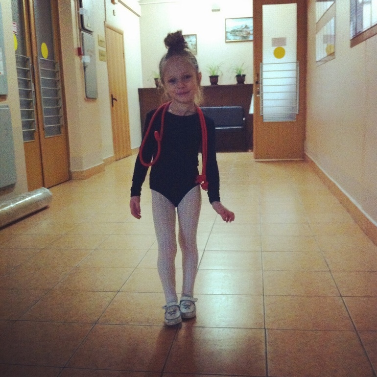 В субботу сдавали зачет. Результатов не знаем, будут позже, но тренер сказала, что все хорошо. Занимается Аня с 16 февраля, то есть 3 месяца. Тренер говорит что природных данных у нее нет, но она очень старается, а это очень хорошо. Хвалит ее, и просит продолжать водить ее на занятия. А я с удовольствием это делаю! Аня изменилась, становится девочкой-девочкой. Ножку тянет, за спинкой следит. красота!