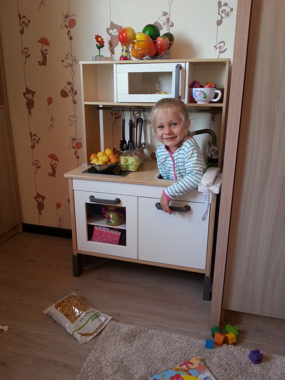 Да:) Папе ужин часто варит:) Но сегодня попросила купить настоящую кухню с плитой!