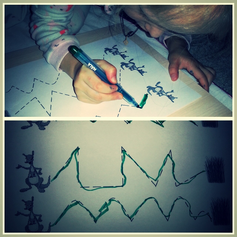 Сделали задания в книгах: вписывали пропавшую букву, вставляли в трафарет буквы, считали кенгуру и писали, соответствующую цифры.
