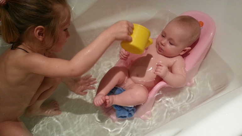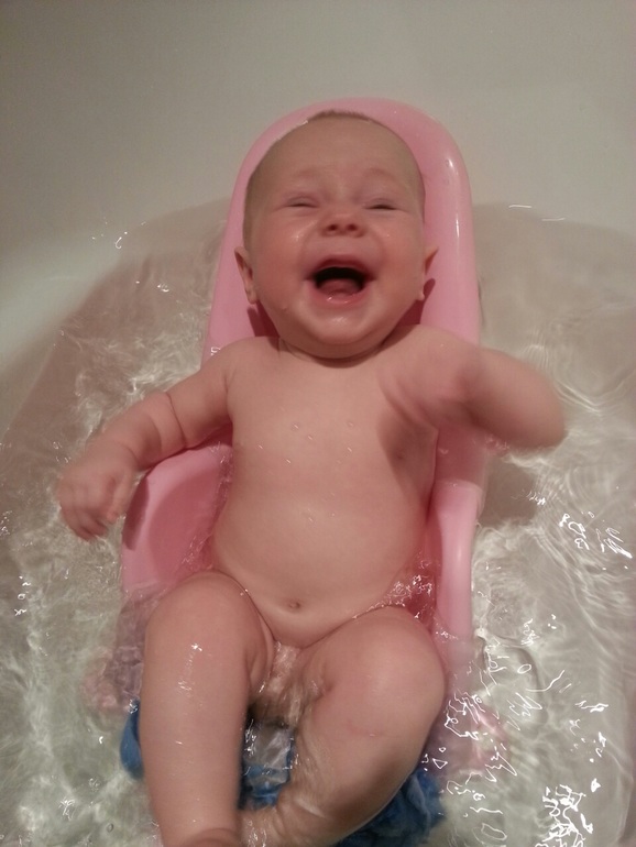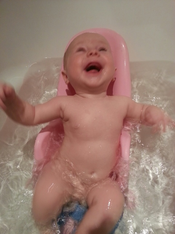 Стоолько счастья! Ручками и ножками бультыхает, брызги попадают на лицо и она хохочет: