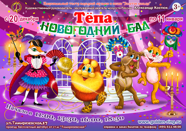 Аналогично :)).Ходили 4 января на этого Тепу...Чуть с ума не сошли.Зал-полное г.У нас был второй ряд,хорошо не брала ребенку отдельный билет.перед нами села бабушка высокая и ребенок даже на моих коленях ничего не видел. Я не знаю кому этот бре динтересен,разве что малышам лет полутора :))).Моей было скучно.Лучше б на "Щелкунчика" билет купили. Скачут животные,мультики эти мелькаю,а особенно "порадовала" морда Кадышевой.И к чему она там была??? И сценарий не знаю кто писал.У нас в саду утренники в разы интересней.Многие сравнивают театры Кадышевой и бабкиной в пользу Тепы и театра Кадышевой.Я не согласна! Были на "Пчелке Майе" в театре им.Бабкиной-супер! И зал современный.и спекталь.актеры-отличные