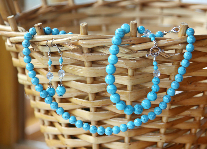Лен, могу и тут. Второе фото- малахитовый комплект- 600 рублей. Бирюзовый комплект бусы,браслет,серьги 1400 рублей.