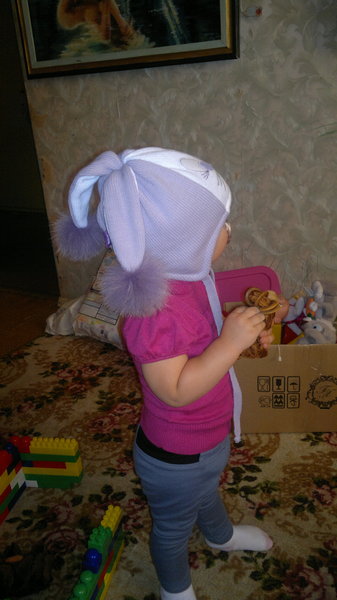 уже давно пора:-). Это она её нашла в закромах, и уже фиг отнимешь, а так Мы без неё стараемся обходиться, может иногда уснуть с ней:) тут Главное во время у нее её отнять и спрятать:-)
