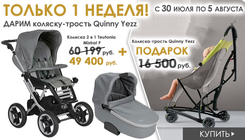 ТОЛЬКО 1 НЕДЕЛЮ! Дарим коляску-трость Quinny Yezz (цвет на выбор: pinkpastel, limeflow, boldberry, violet shade) стоимостью 16 500 рублей, при покупке коляски 2 в 1 Teutonia Mistral P или коляски 2 в 1 Teutonia BeYou Elite. Коляска-трость Quinny Ye...