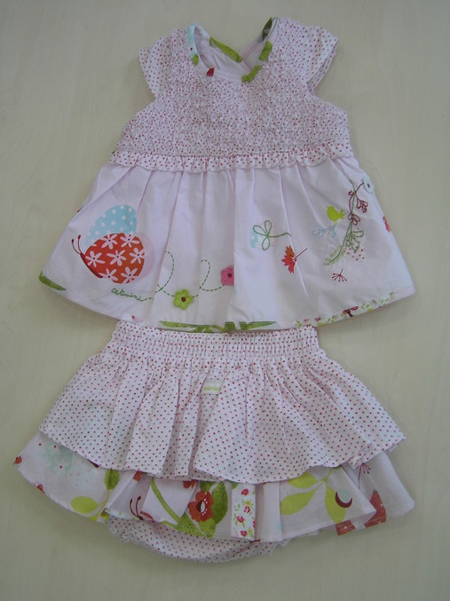 Комплект топ+юбка-трусики (цвет такой, как у платья с лосинами). Размеры: 6м- 1200, 9м- 1400
