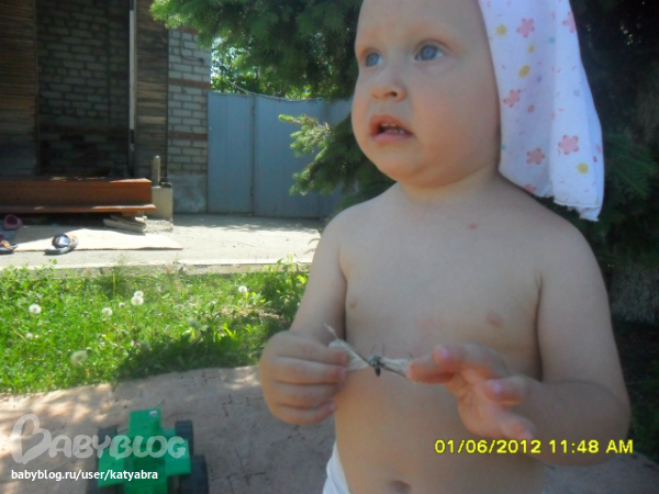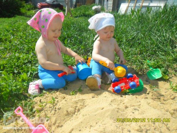 А так все хорошо - гуляем во дворе много, порой абсолютно голые (за исключением мамы)))), мама - в купальнике!!!! Гора песка - мое спасение, сама с удовольствием леплю куличики и пирожки из песка (эх, трудное детство).