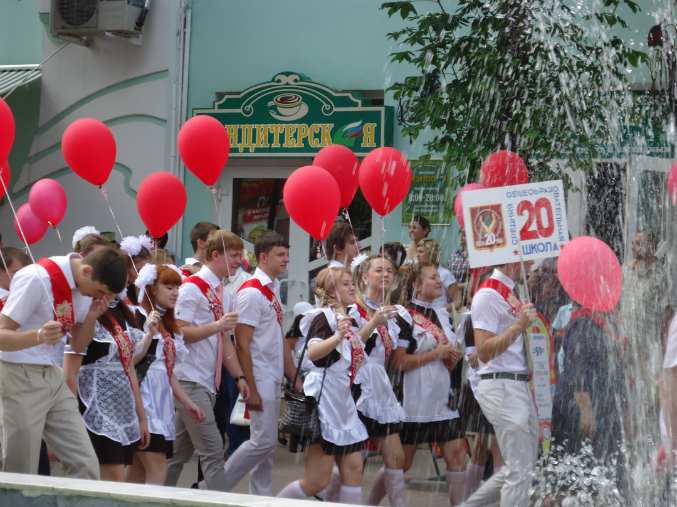 Парад выпускников был в центре на днях,так здорово-оркестр,спортсмены,шары....