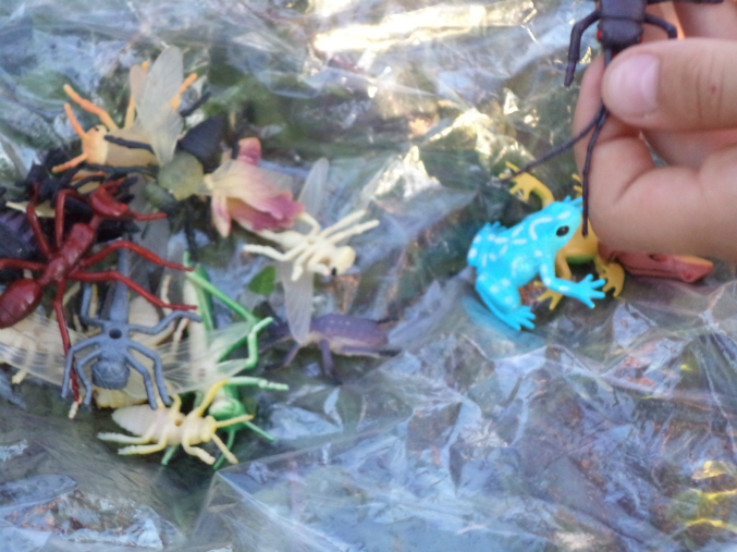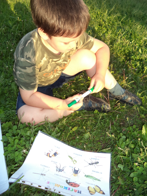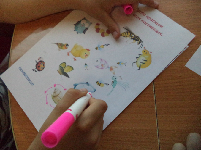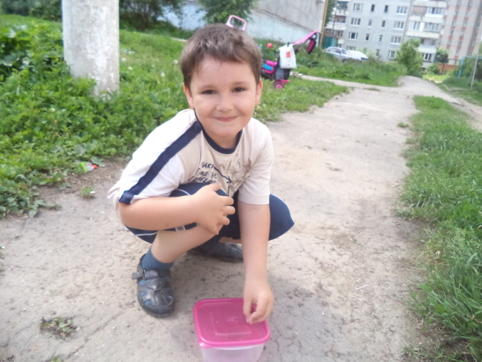 Сначала на улице искали насекомых и сажали их в баночку,чтобы получше рассмотреть!