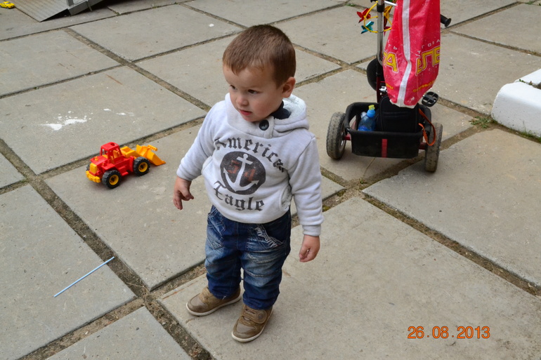 Растет Никитка не по дням,а по часам..Летом мы каждые выходные ездили на дачу,купались на речке,ходили за грибами,парились в бане..да много чего делали))Несколько раз брали с собой Дениску (друган Никитин) с мамой)С утра до вечера они там носились по травке, загорали на солнышке, купались в бассейне и на речке,в общем отрывались по полной).Кстати,купили Никите круг надувной,он такой смешной в нем.В речку заходит,вода холодная,а он -ааа горячая,горячая....опопопопоп и поплыл.))Плавать Никита предпочитает сам и без чьей либо помощи,но стоит отойти на метр,сразу вопль (притворюшечный правда).Нырять совсем не любит,боится,а так из воды не вытащишь)За лето научились многому:самостоятельно кушает(включая суп и не проливая на себя),говорить человеческим языком (говорит все и достаточно понятно,слов вроде "бибика","вава", "бобо" и "амам" у нас нет,старалась приучать сразу называть вещи своими именами,чему очень рада).Никита растет очень вежливым мальчиком,при каждом удобном случае говорит спасибо (раньше было "пася",сейчас полноценное спасибо),здравствуйте,привет,пока,пока-пока,досидания (до свидания).Очень Любит бабушку Наташу и дедушку Юру.(зовет их исключительно по имени).Т.к по будням они работают,много времени провести получается на выходных в деревне,остается с ними спокойно и с большим удовольствием(пока мама с крестной уходит в баню на пол ночи,он даже и не вспоминает)).Собачка"Белый"тоже в почете))Несется к ней сломя голову,несмотря на грозные крики,к слову "Белый"это не просто собачка,а помесь алабая и дворняги..довольно внушительных размеров).Еще одно Никитино увлечение- машины. Машины-машины это все))При любом удобном поводе ему нужно куда то ехать,мне кажется была бы его воля и мусор на машине бы выносил))Рулит,сидит важный при важный...знает где аварийка,где багажник открывается,где фары и магнитола включаются (правда иногда забывает выключить и пол утра мы носимся,пытаясь зарядить аккумулятор)).....С горшком у нас проблем нет и никогда не было,ходим туда с полутора лет и соответственно с это го же возраста памперсы в глаза не видели))Просто в один прекрасный день снял памперс,отказался одевать,а я настаивать не стала)За все это время мы намочили штанишки раз 5,не больше))Честно -честно)).Еще много чего произошло,уже не помню,но лето пролетело как всегда быстро((Пришло время пойти в сад...кстати первое собрание родительское я пропустила,по очень глупой причине)) В письме было указанно 3.06.2013 в 17:30,а меня переклинило,что 6 июня..причем перечитывала несколько раз)В итоге пошла к заведующей и проговорила персонально,она все объяснила,рассказала,в общем я осталась довольна и заведующей и садиком)Предстояло самое страшное...отдать Никиту в сад.Назначили нам на 2 сентября.Где-то за месяц начали проходить врачей и сдавать анализы,уложились за 2 поездки в больницу (повезло),оставалось только заключение педиатра,анализ на энтеробиоз и справка из санэпидемстанции.С двумя последними проблем ни каких,а вот заключение нам не выписали.Вера Андреевна (врач педиатр,которая наблюдала меня с самого рождения и Никиту,отказалась нас принимать без талона..даже слушать не стала,причем мед сестра(по совместительству моя соседка,на пару с врачом наблюдали меня с рождения)которая бежит ко мне при каждом удобном случае,то по бытовым вопросам,то прививки какие то от грип