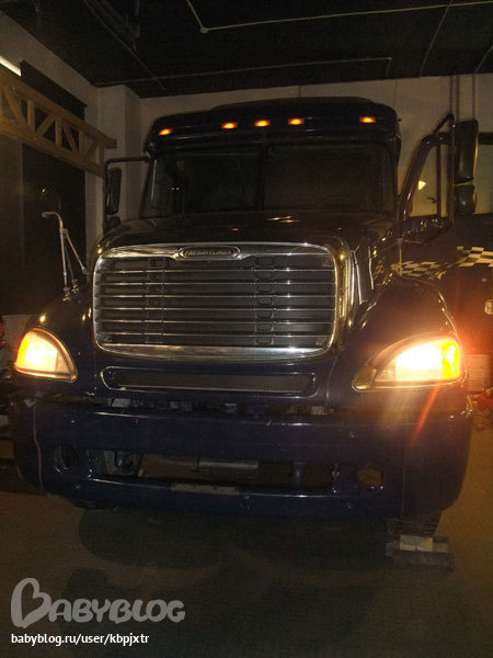 В зале стояла огромная машина.. Девчонки отказались рядом с ней фотографироваться. побоялись) Фары включены, а вдруг поедет.. Зато чужие мальчишки там излазили всё!!