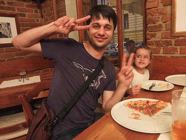 Ой, наш папка .. в барах как сыр в масле. Все весёленькие! после съеденных 4-х пицц!!