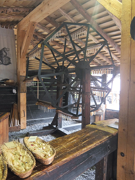 Здесь нам показали как делать свечи. Процесс трудоёмкий! Тебе за монетку дают ниточку !)) и ты эту нить опускаешь в бООльшую бочку с воском. Остужаешь ниточку и снова опускаешь.. и так до бесконечности!.. Каждая, свою свечку, Лиза и Оля делали около часа!