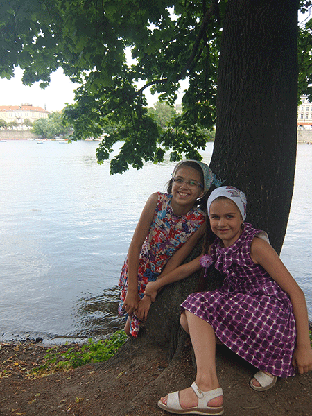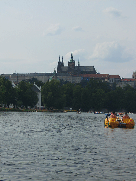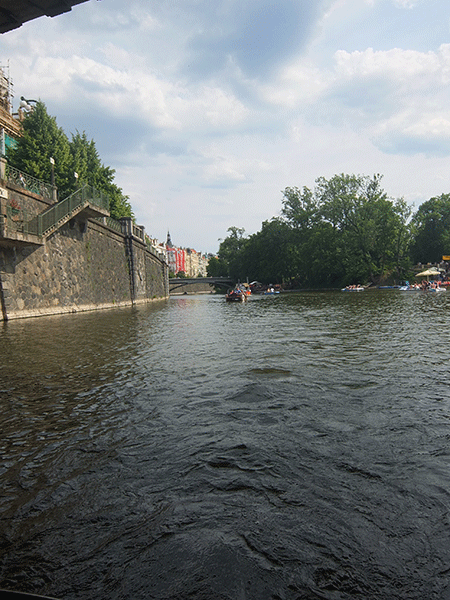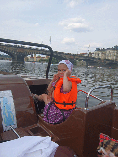 Потом, не теряя надежды, мы пошли искать детскую площадку (как обещала реклама) и как мы обещали детям.. рядом с Карловым мостом.. "Только чуть пройти".. ( и как мы вчера её не видели, ведь вроде всё обошли). НИЧЕГО не нашли! Тут пронесло Соньку! СРОЧНО надо в туалет! Добежали до первого места.. На берегу, на каком то пароходике.. Джаз клуб (да и фиг с ним, с джазом то!) Всех сводила в туалет.. Уходить ТАК не удобно :-!)) Пришлось как порядочным)), заказать пива)) и штрудели для всех.. Здесь, на удивление они были! Но, вот незадача: все вокруг курили!( Поступило предложение выйти на улицу.. Там было пару столиков.. НО начался дождь!( Да и разве это могло нам помешать?! Сущие пустяки! :-)))