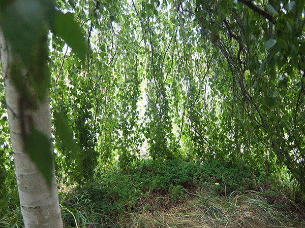 Как шалашик.. Дети сфоткали берёзку внутри..