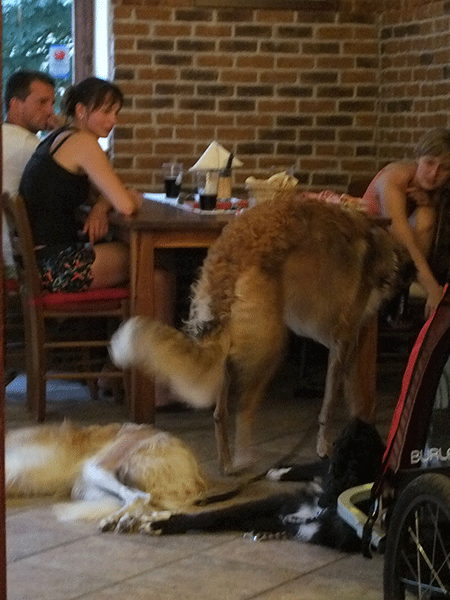 Это собачка встала.. Выше стола! )) у хозяйки кушать просила..