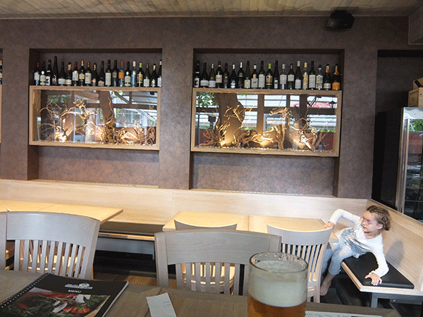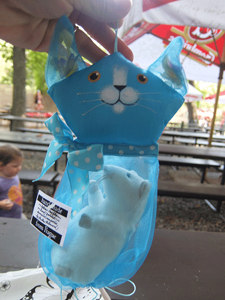 Затерялось фото.. с зайцем.. Дело в том, что в этот бар все приносят зайцев (в любом виде) и получают кружку пива в подарок. Лизка выручила папу. Сплела зайца из резиночек..))