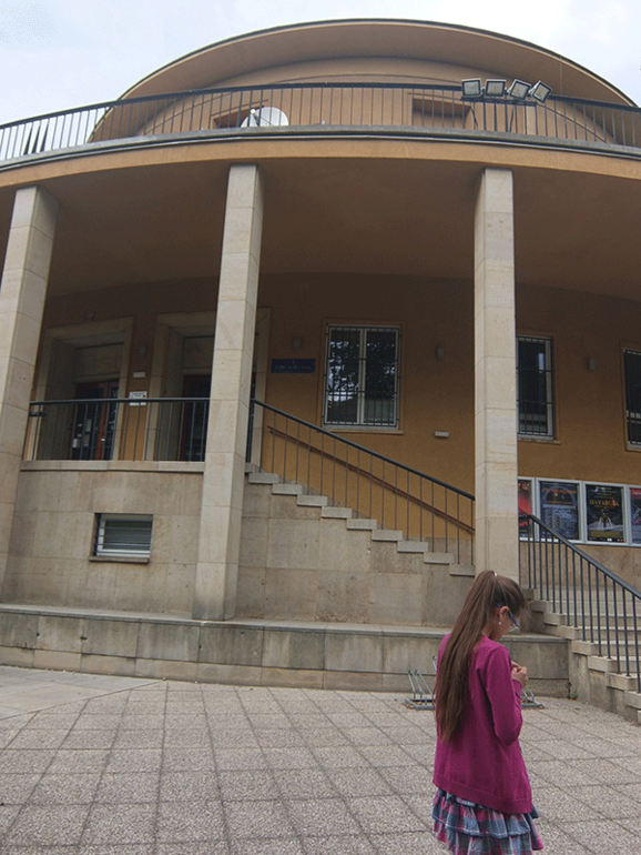 Вот с колеса то нам и стал заметен планетарий!! Справа, с круглой крышей..