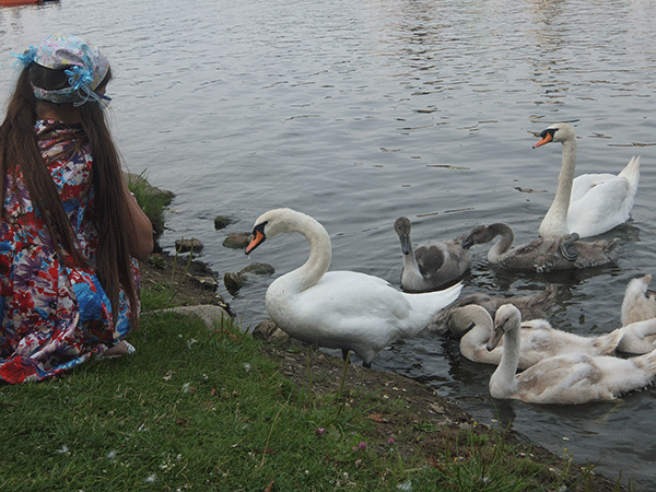 А лебедей там вдоль берега реки - полсотни наверное.. и все не прочь поесть с рук.
