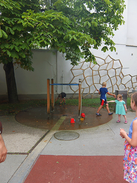 Нажимаешь на кнопочку - сверху откуда то поливает дождь.. В такую жару, как в это лето просто спасение!