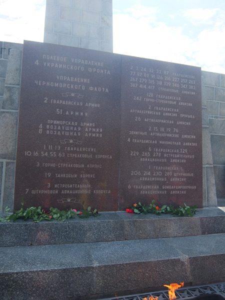 Мемориальные стелы хранят имена 240 Героев Советского Союза, удостоенных этого звания за освобождение города.